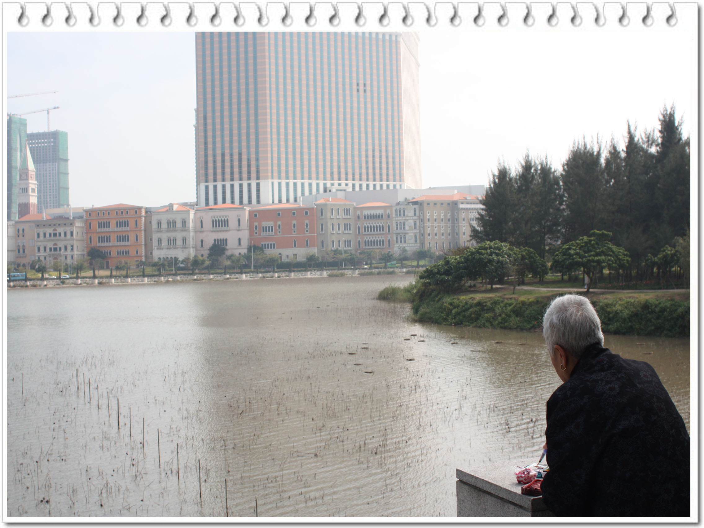 할머니 한 분이 건너편 베네시안 호텔을 그리고 계시네요.